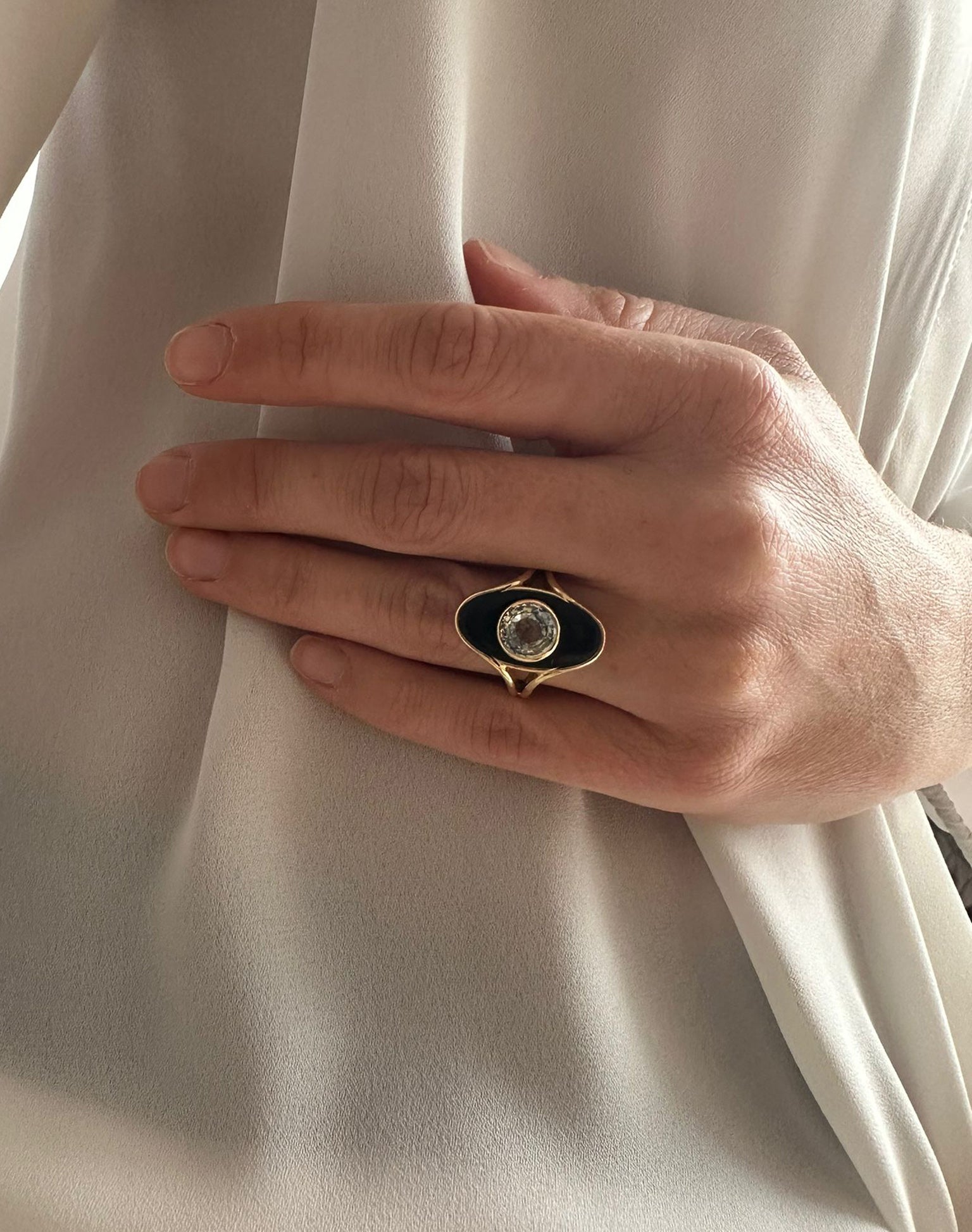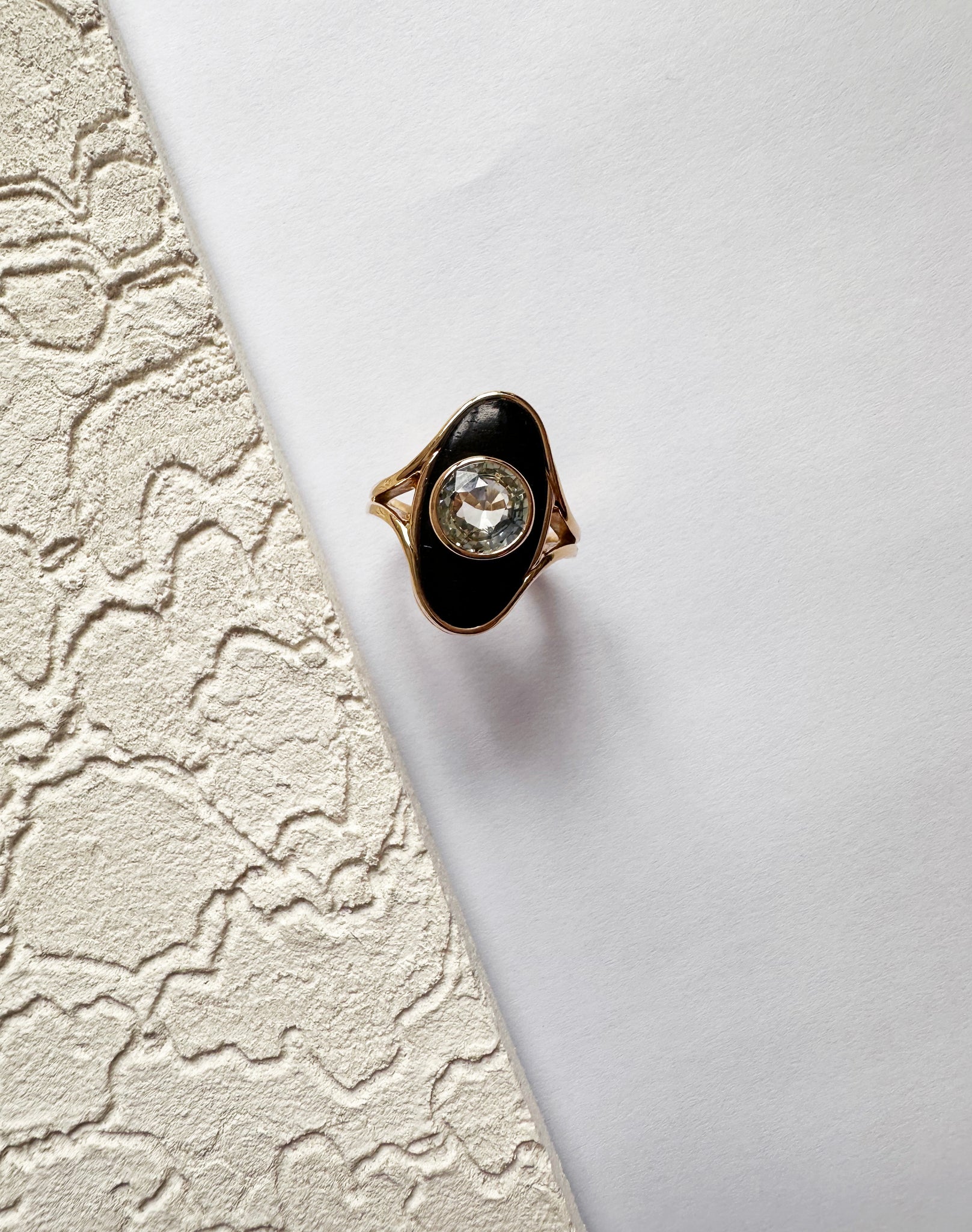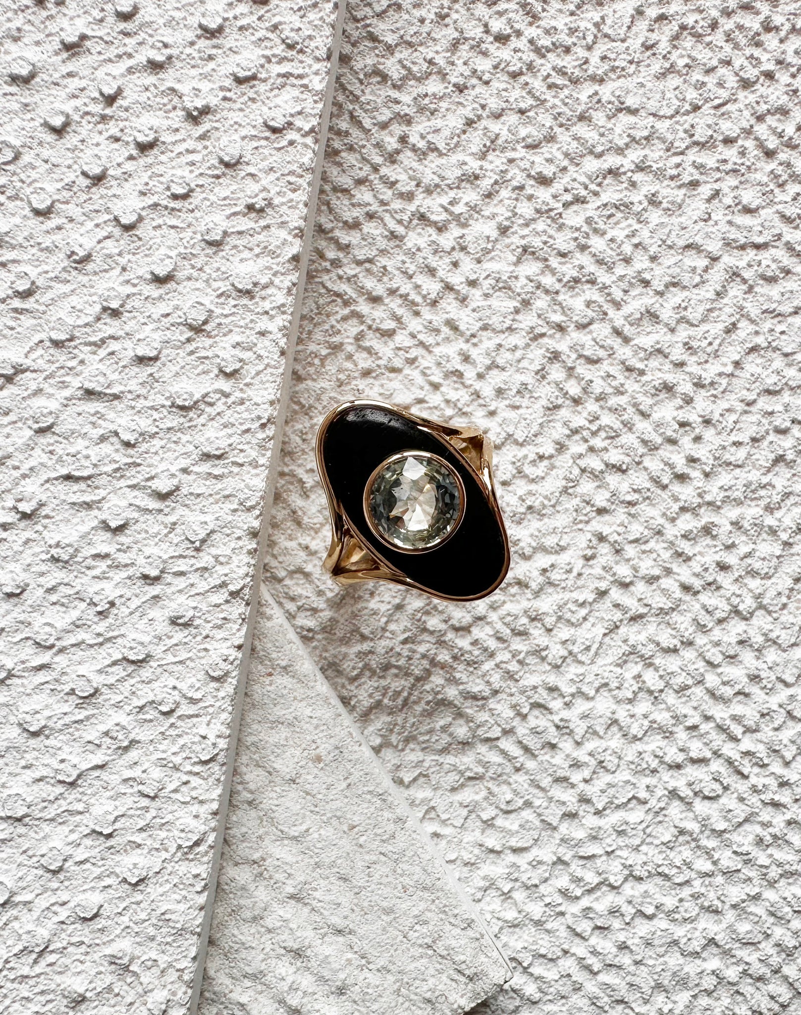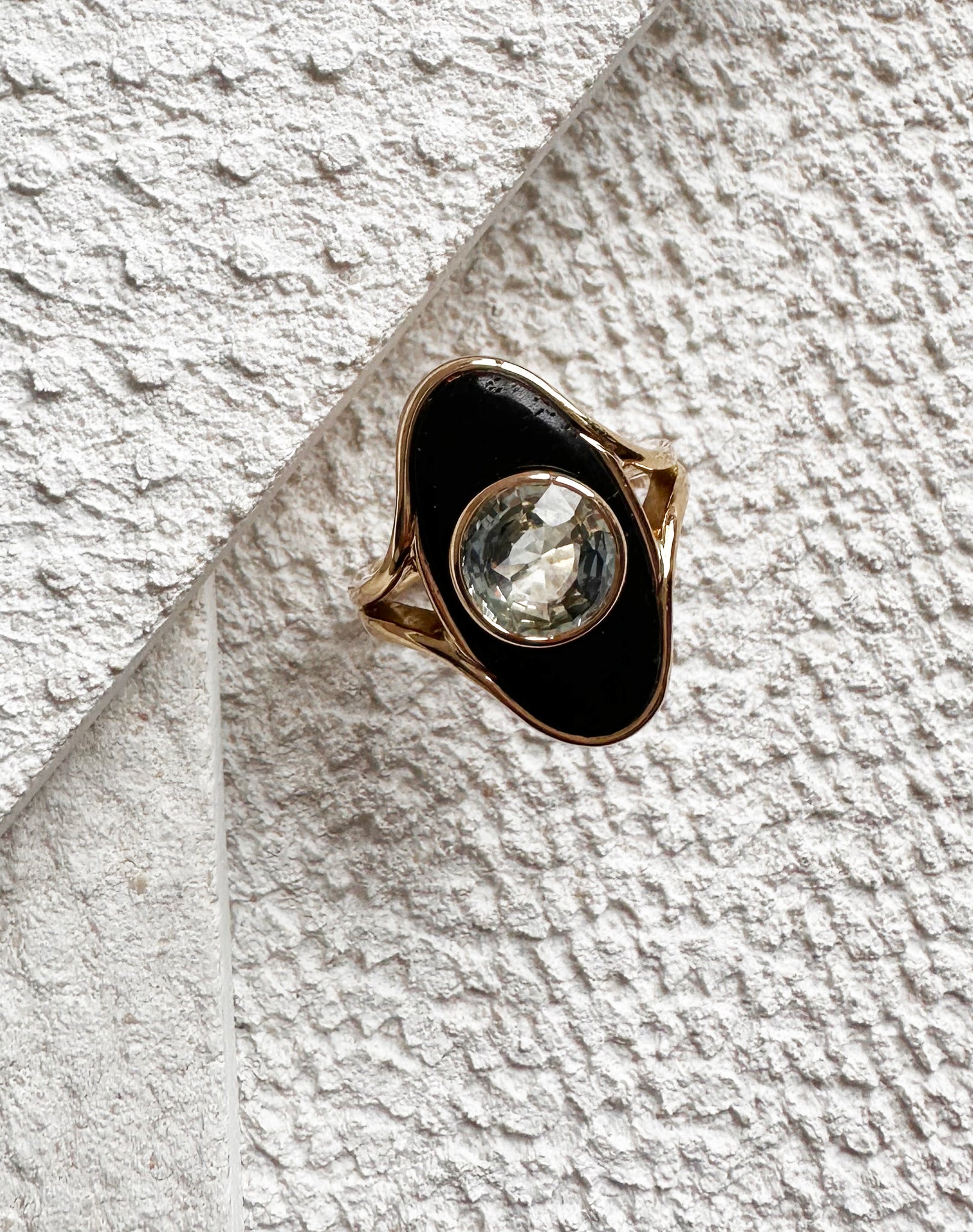 Bague en or jaune 18KT avec ébène & saphir 2,40ct non chauffé jaune et vert