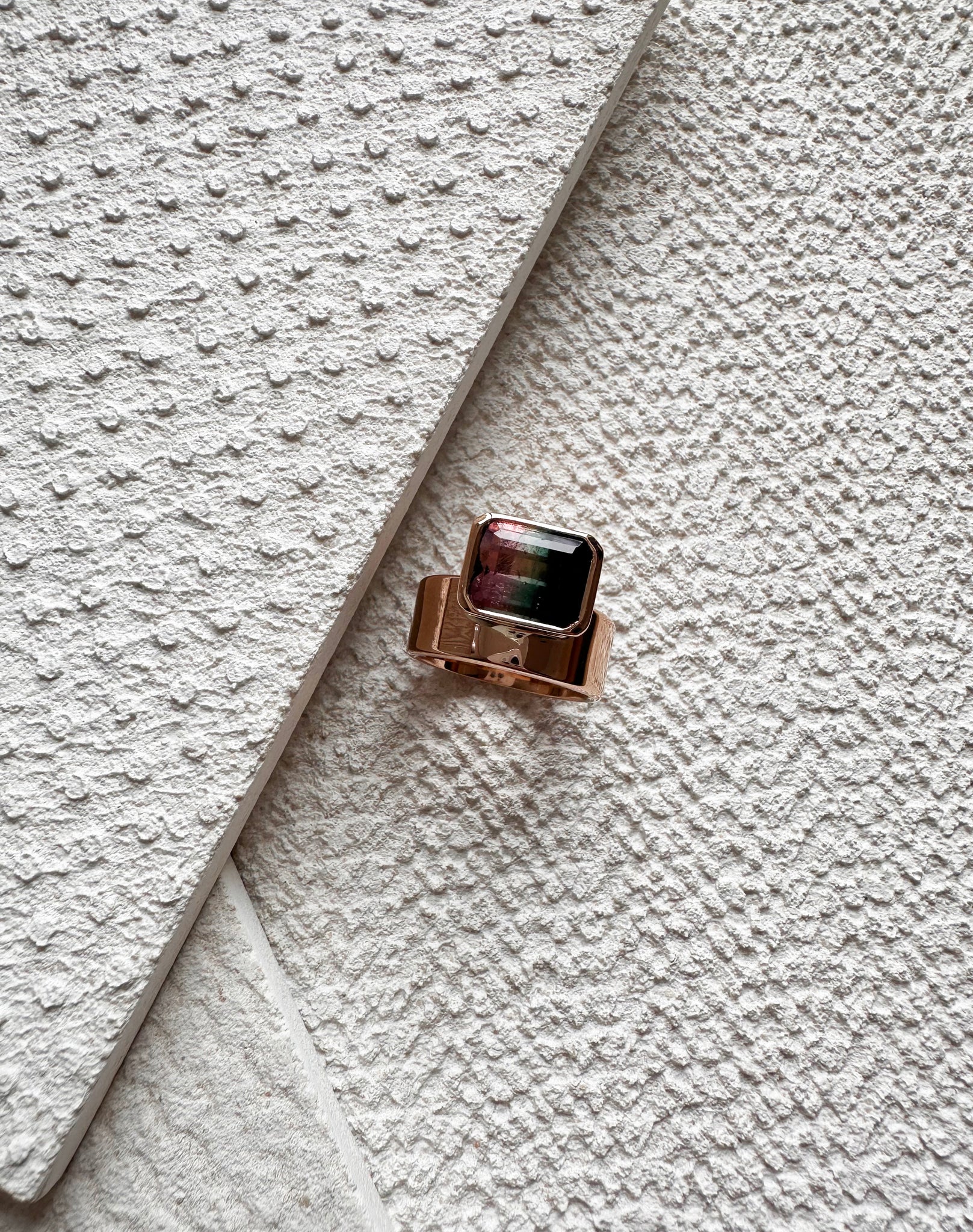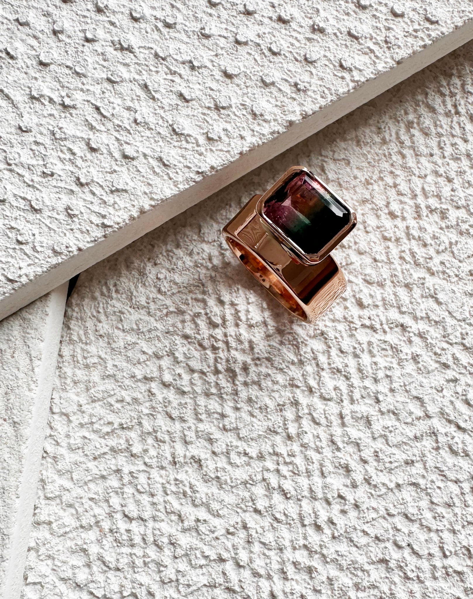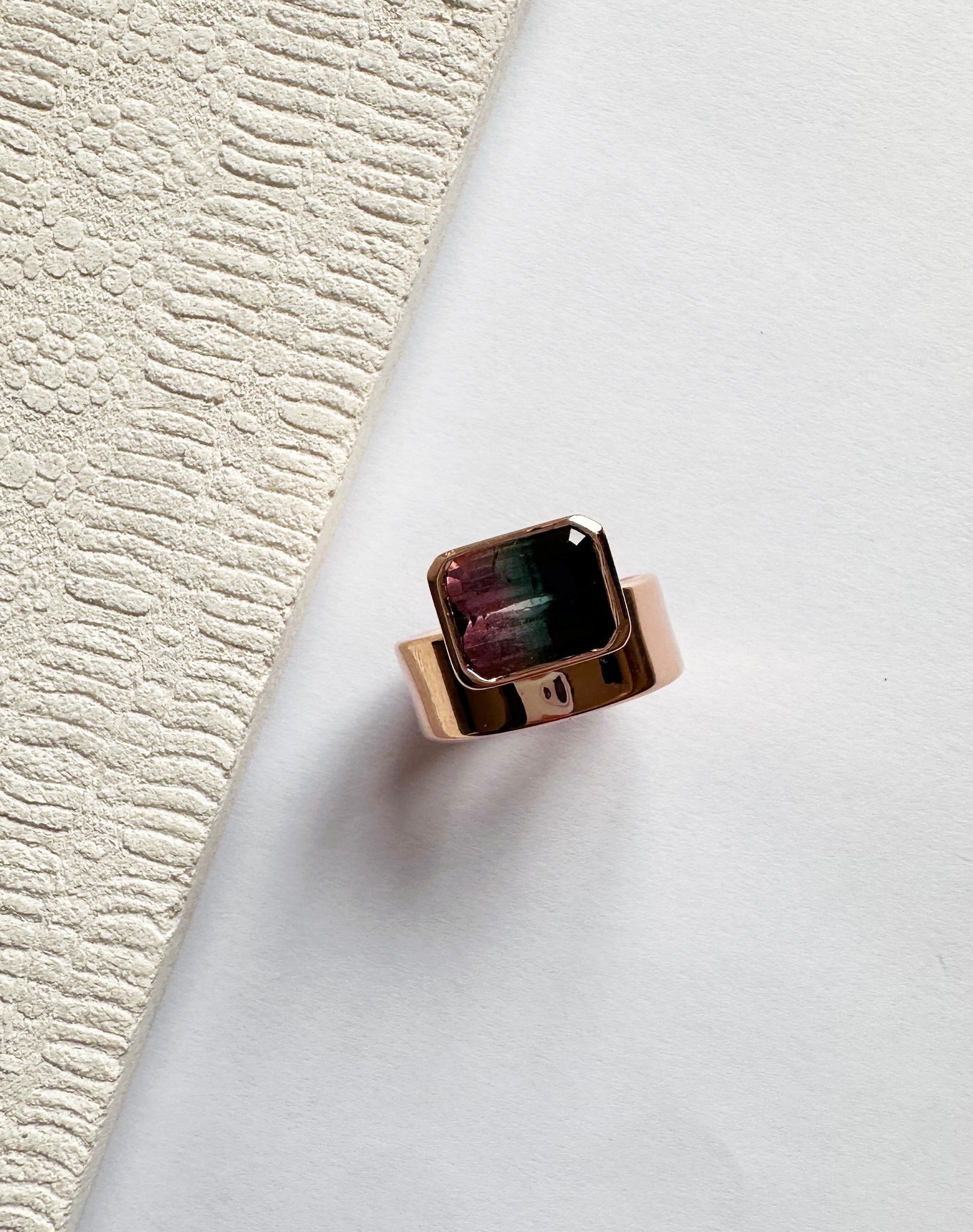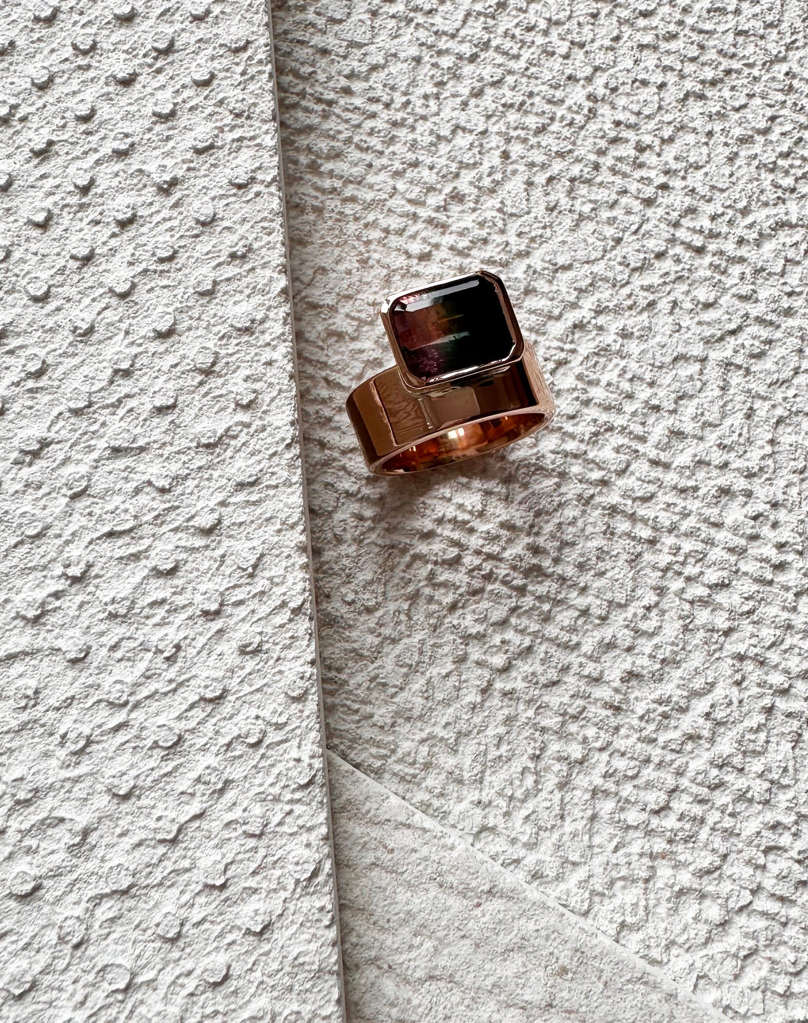 Bague en or rose 18KT avec tourmaline multicolore 4,77ct