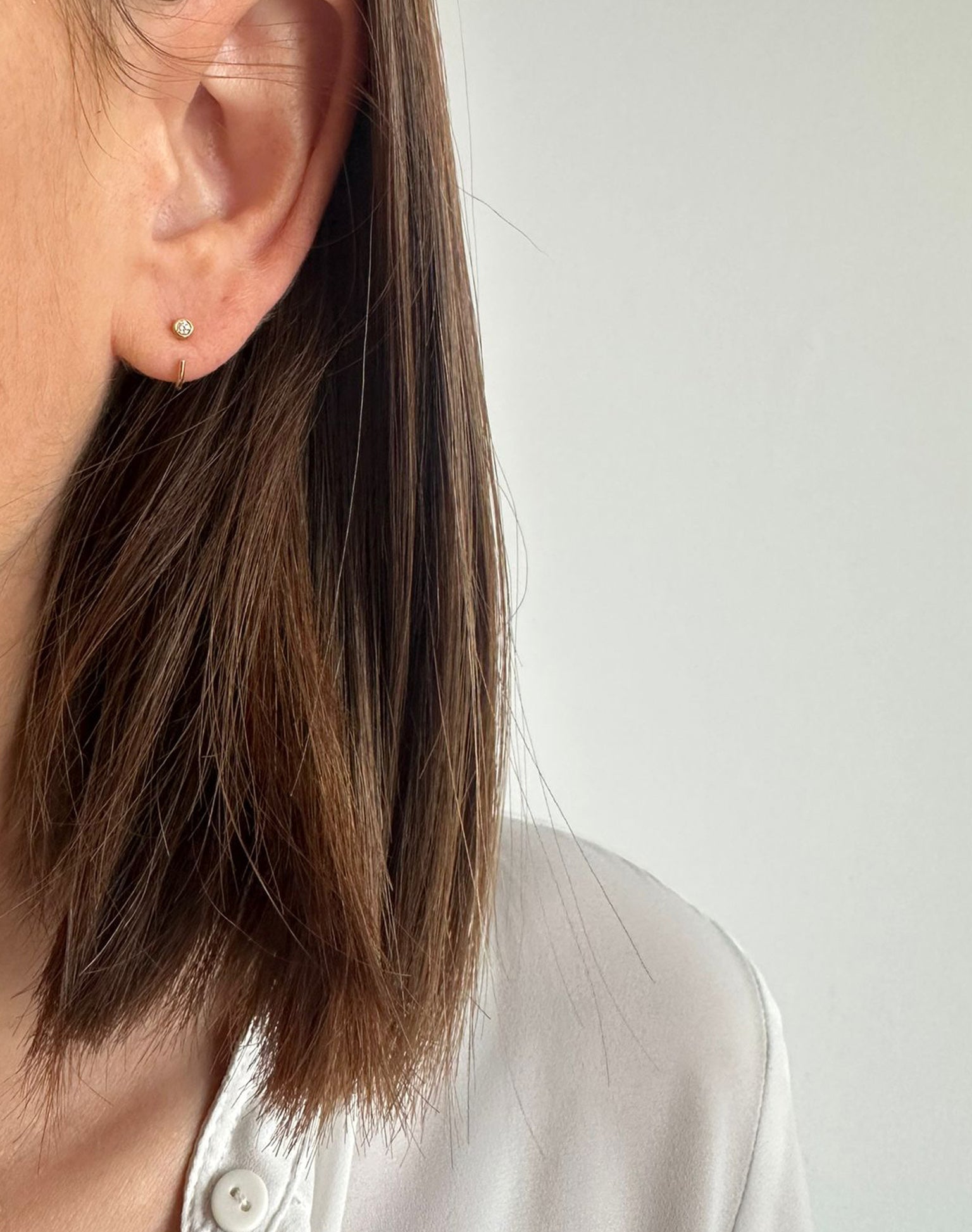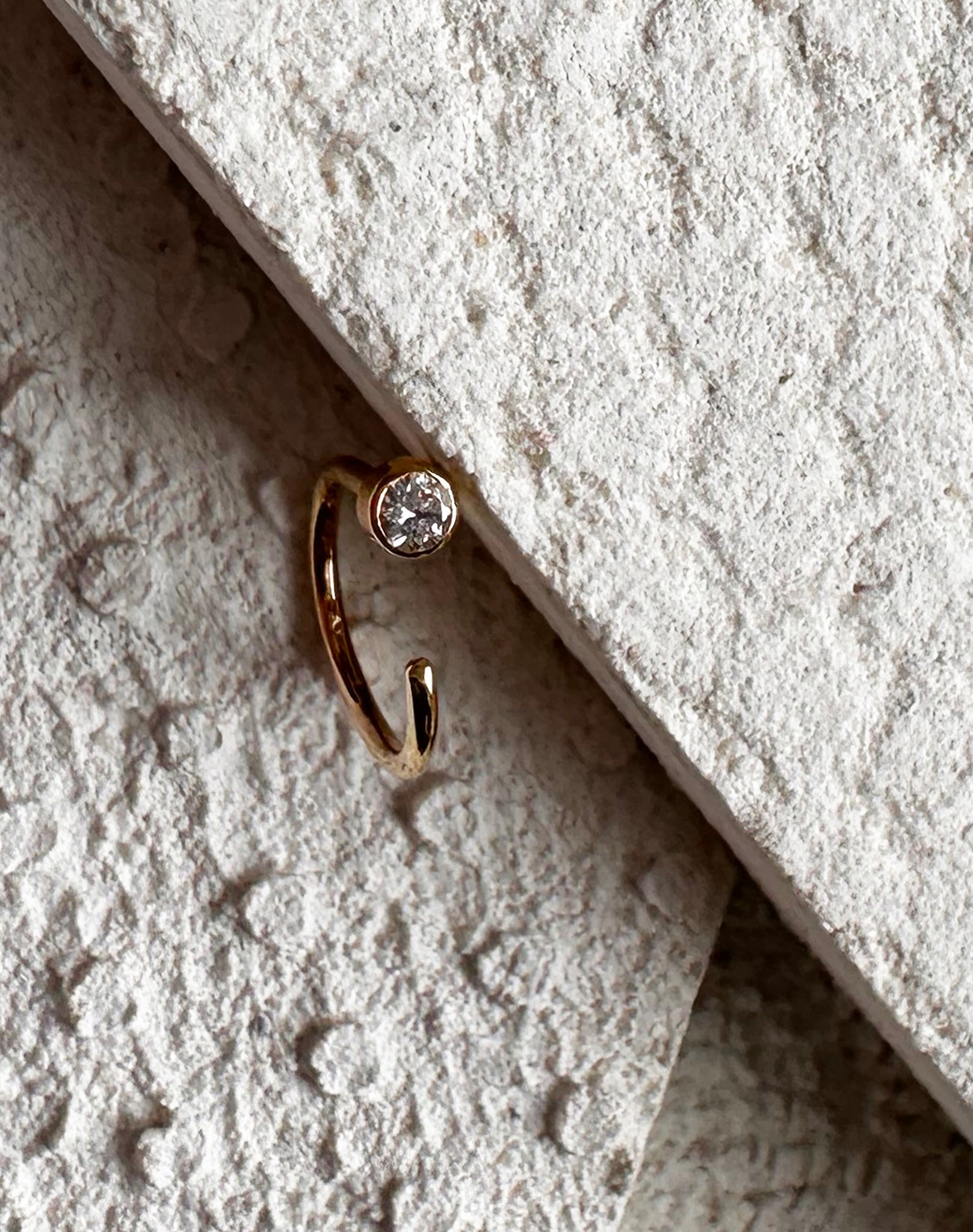 Une boucle en or jaune 18KT serti d'un petit diamant
