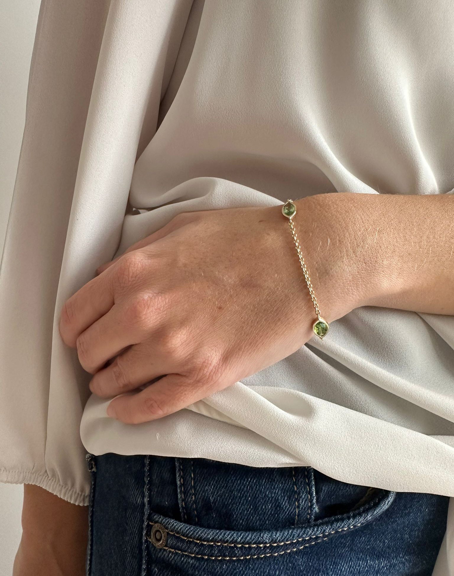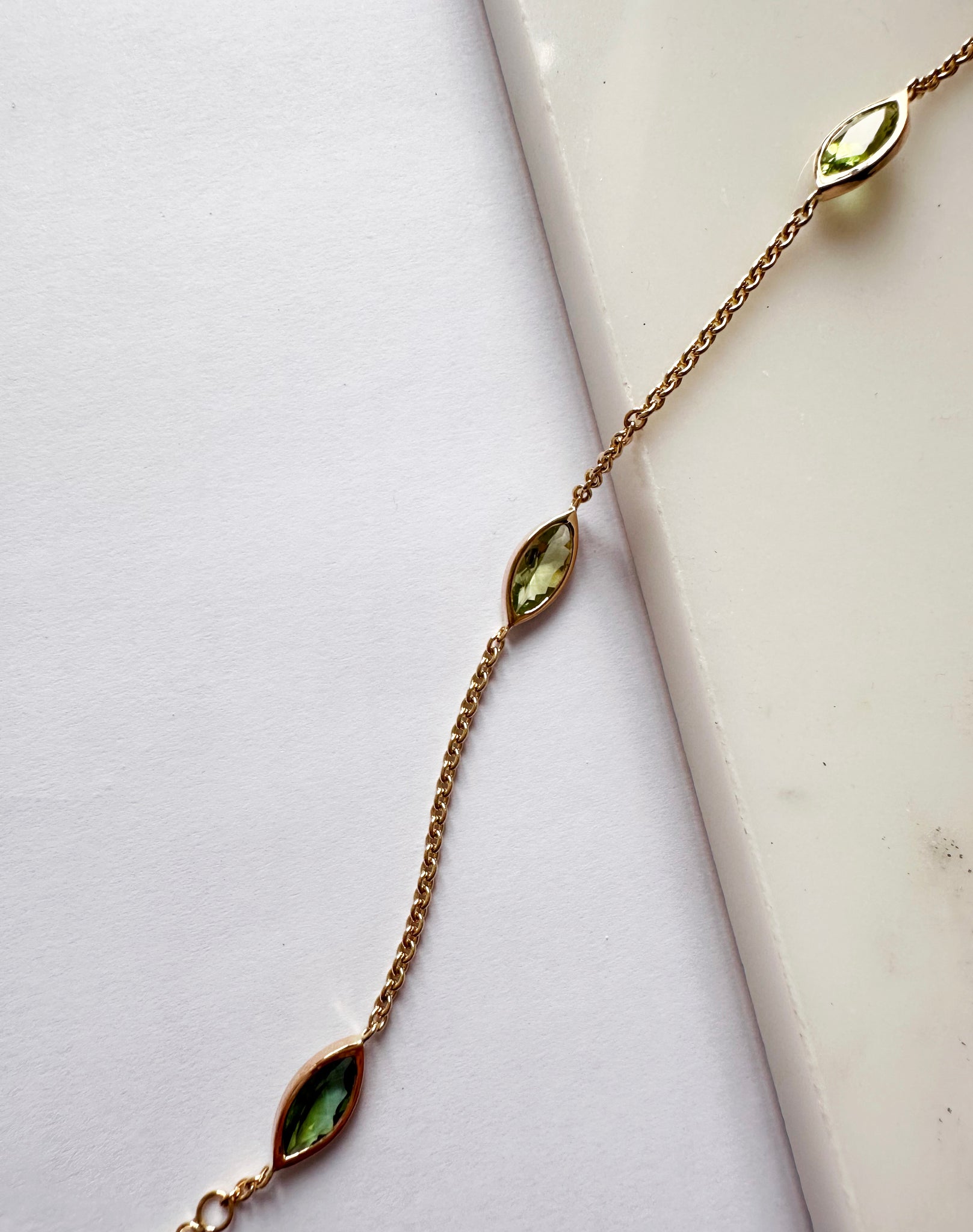 Bracelet en or jaune 18KT serti de 3 tourmalines vertes de taille marquise