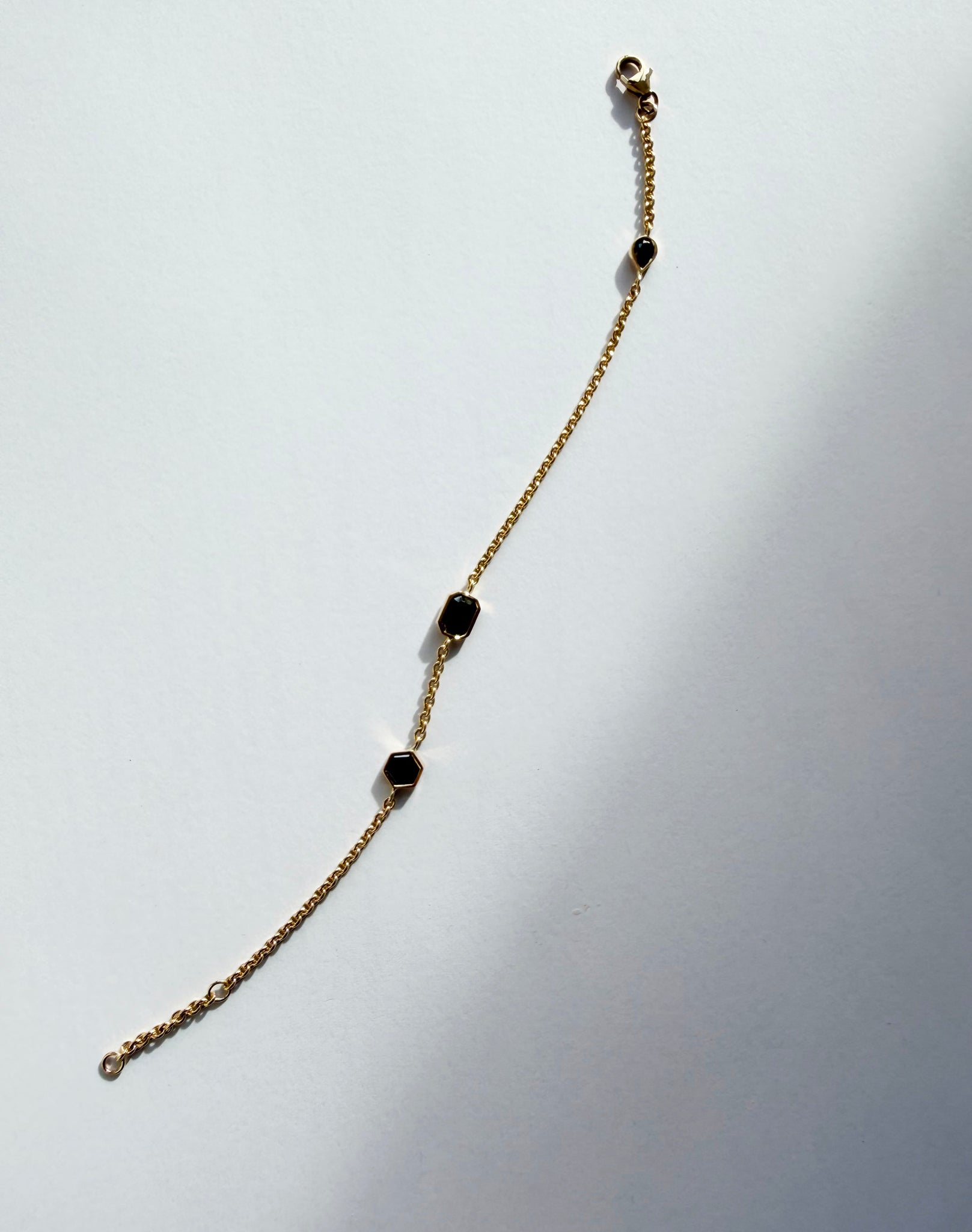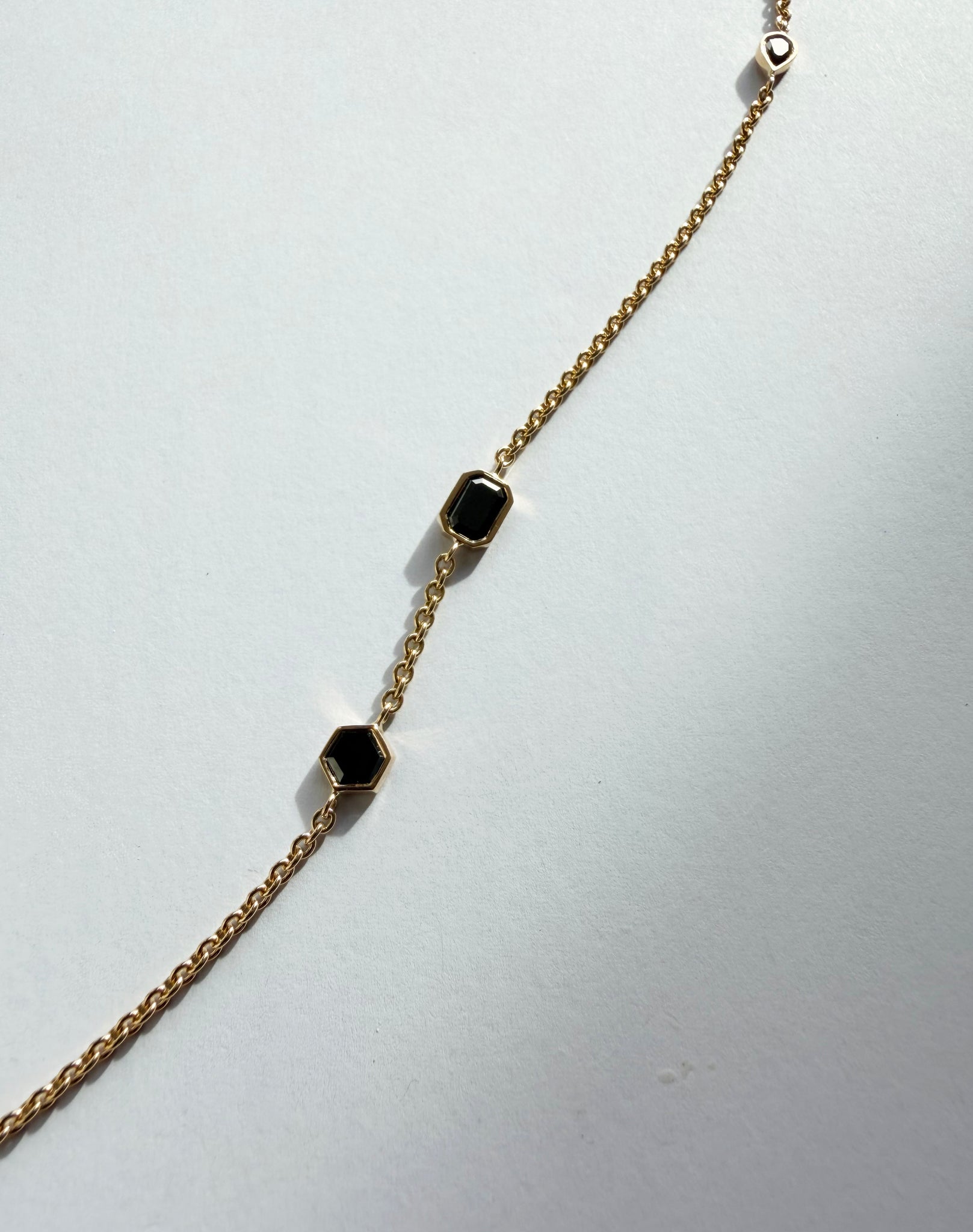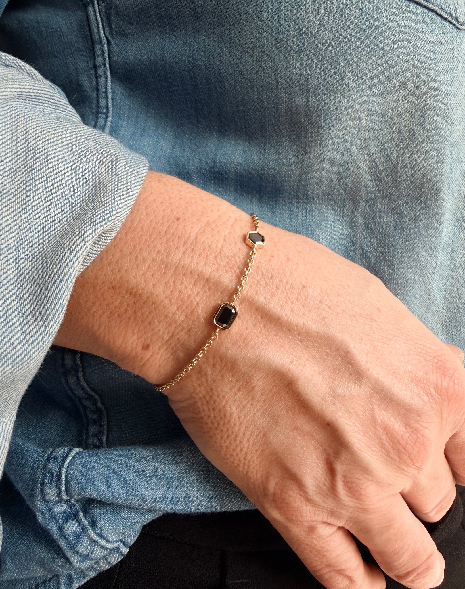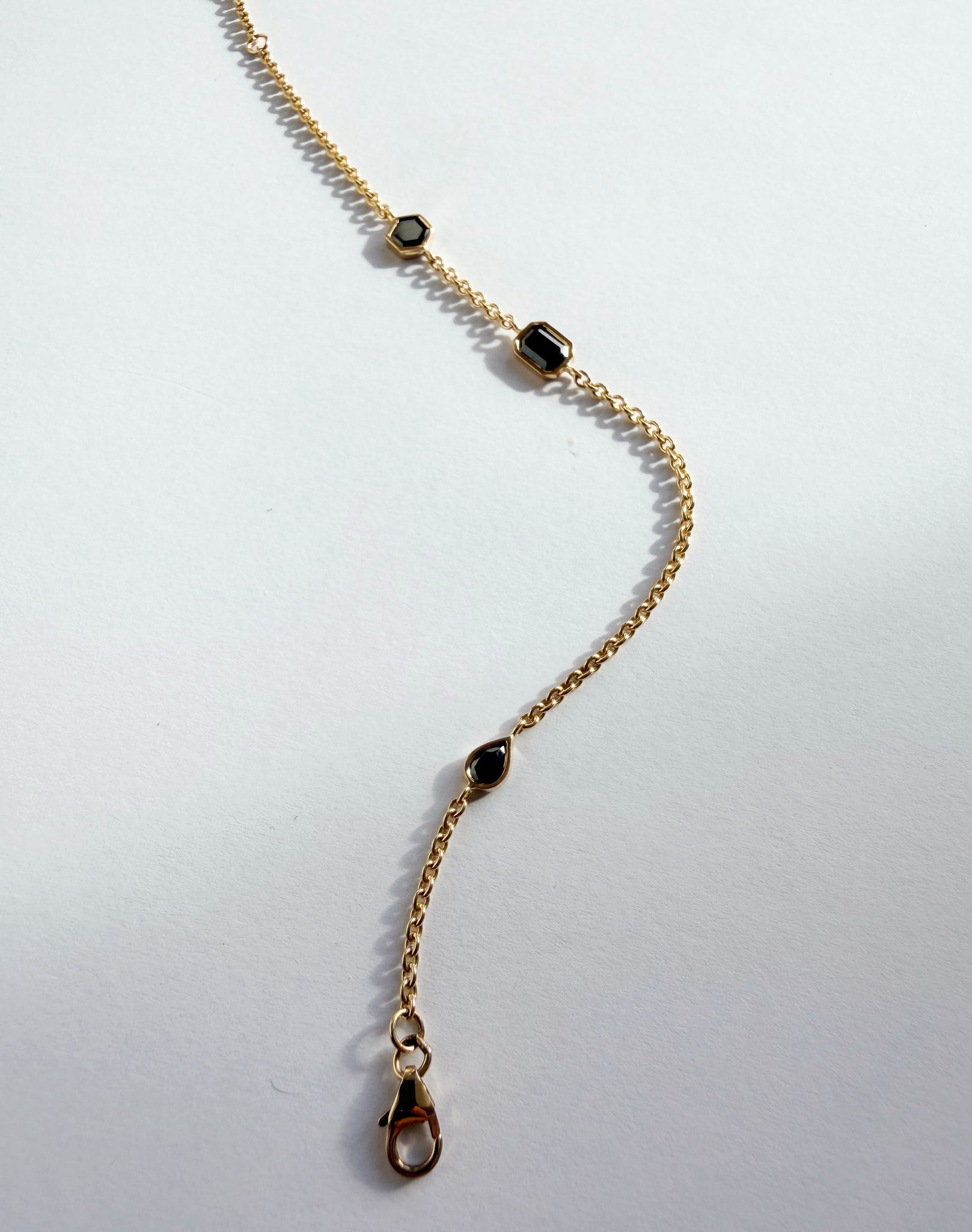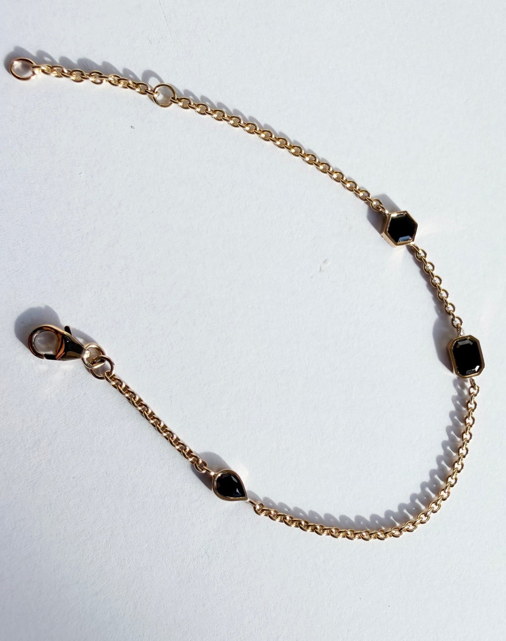Bracelet en or jaune 18KT avec 3 diamants noirs de taille fantaisie pesant 1,12ct