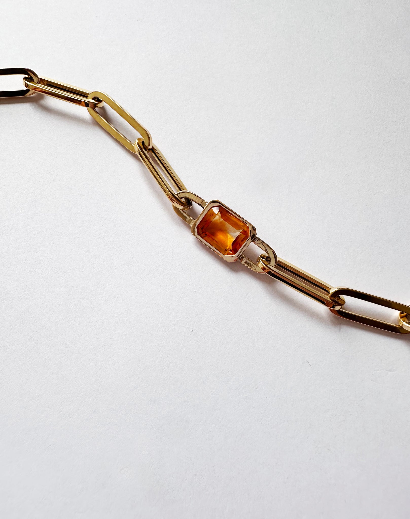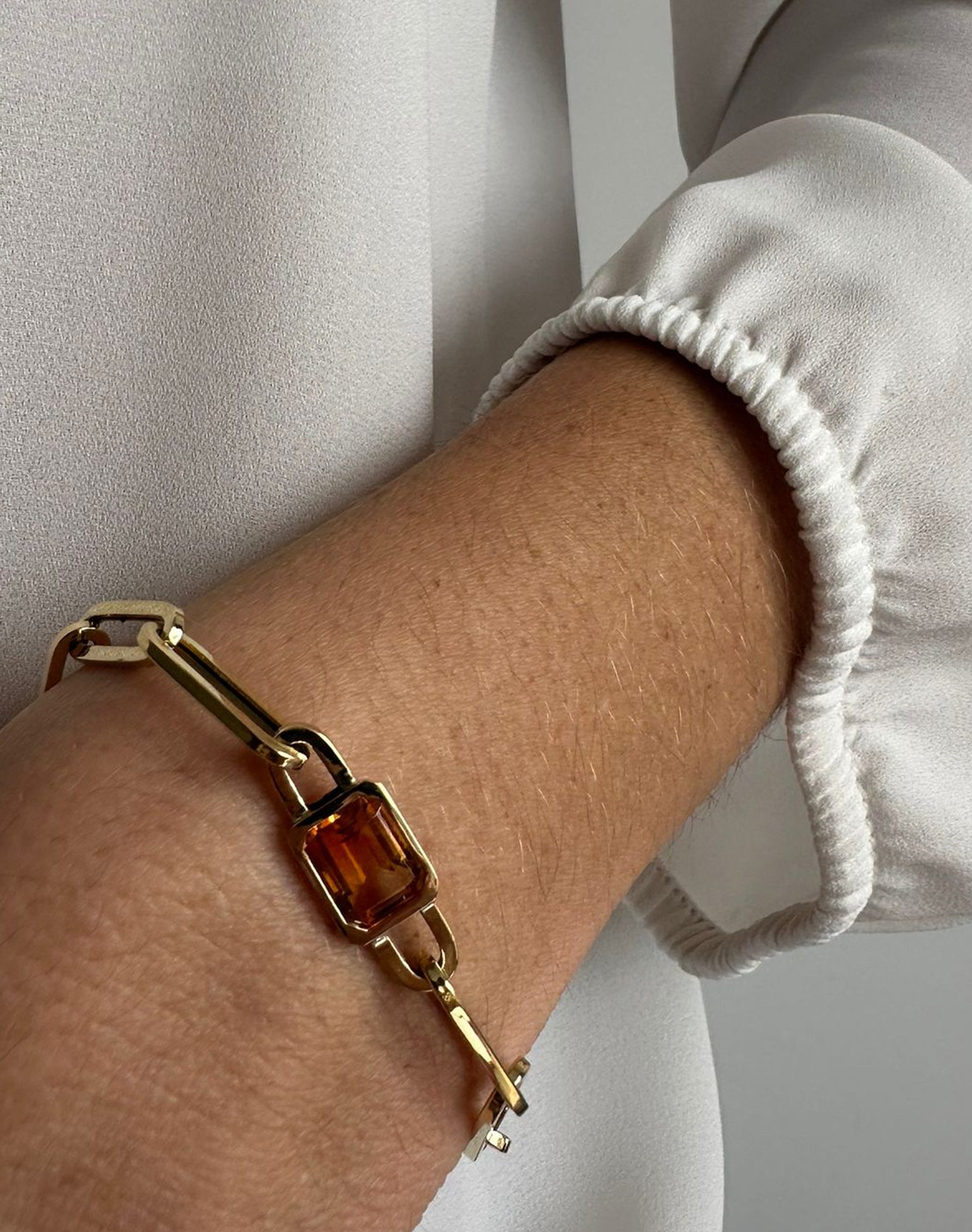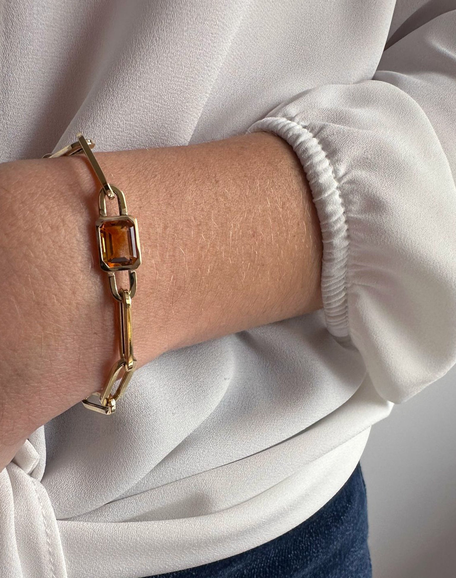 Bracelet en or jaune 18KT rectangles arrondis creux avec citrine de taille émeraude