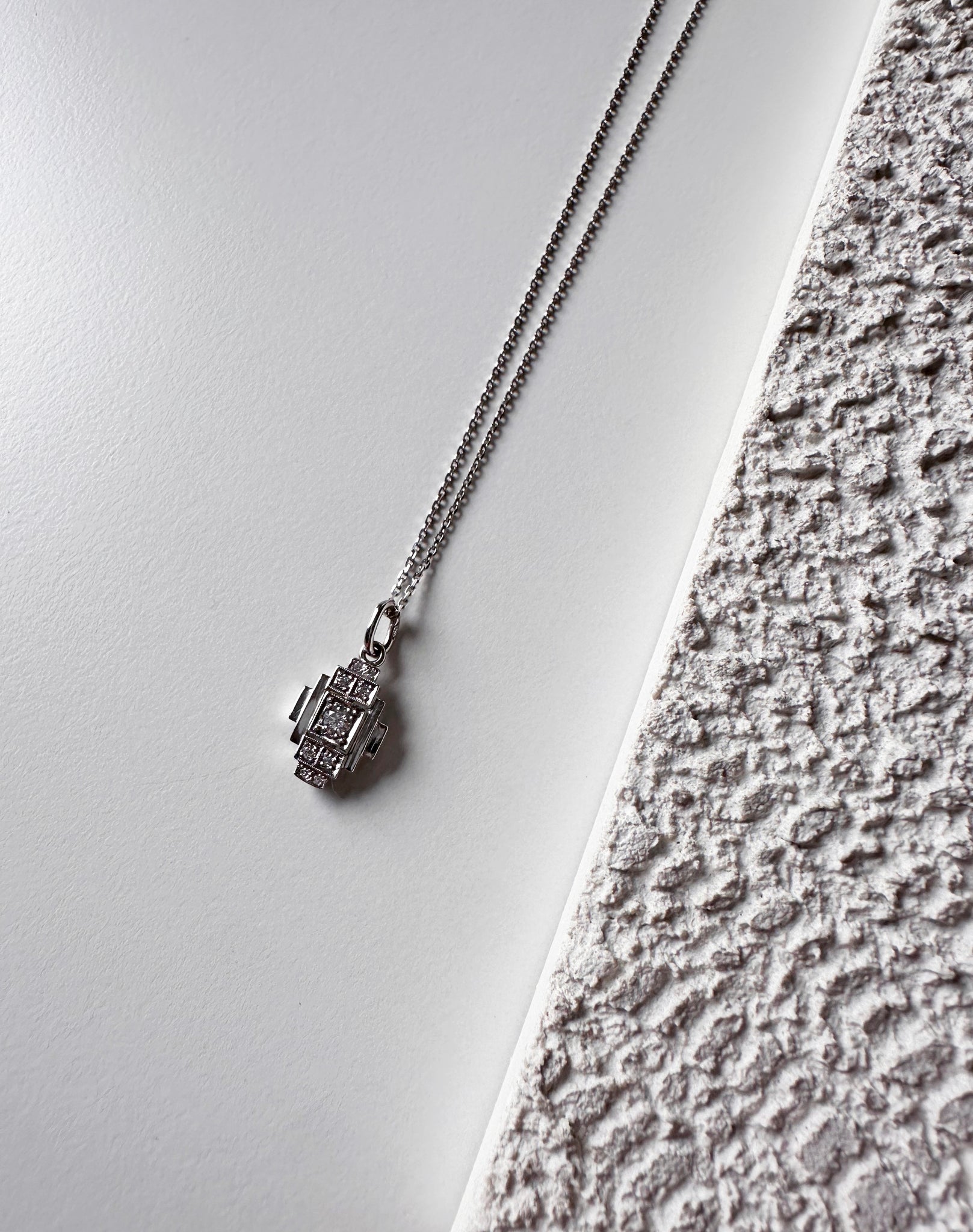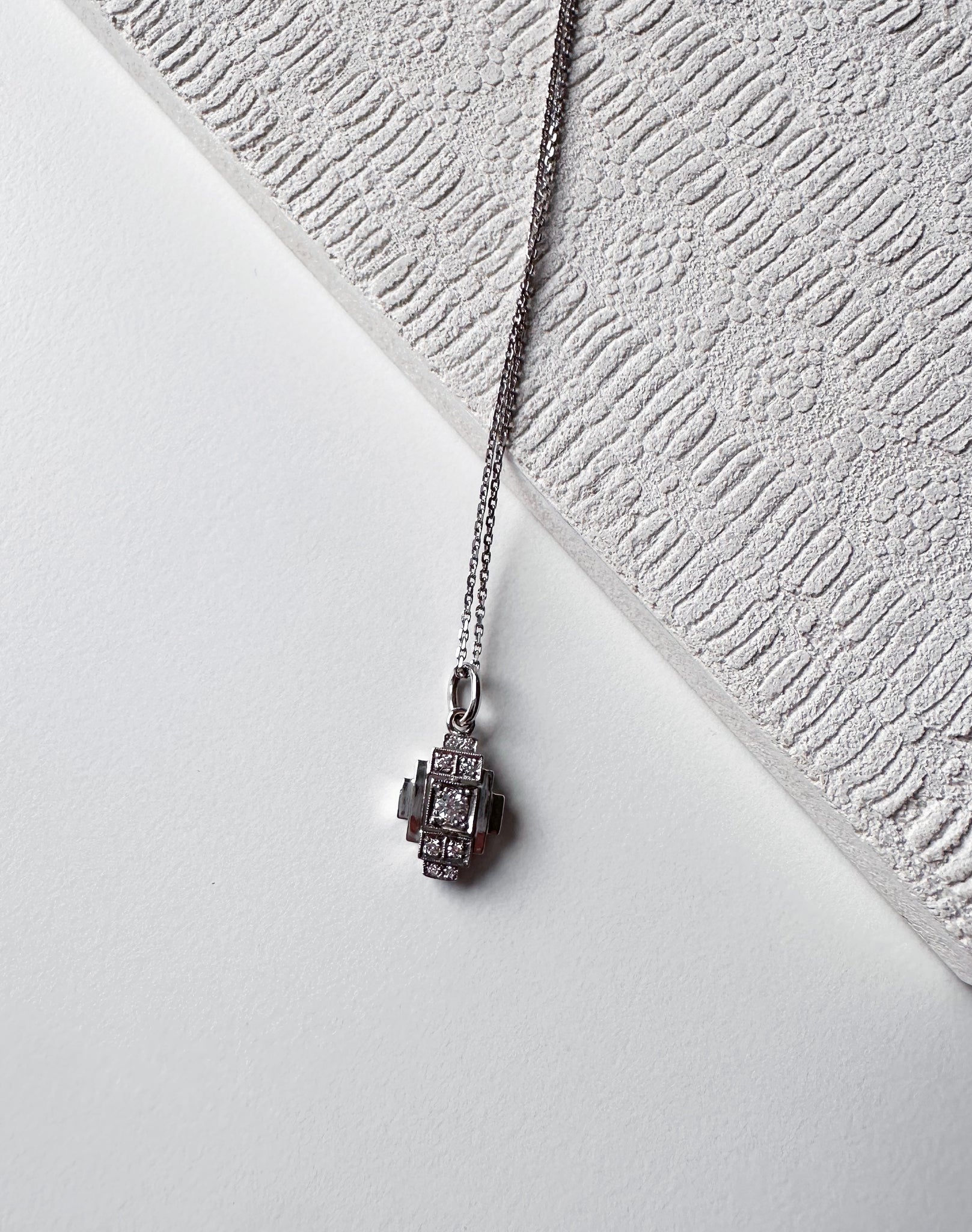 Pendentif Vintage en platine serti de petits diamants 0,16ct