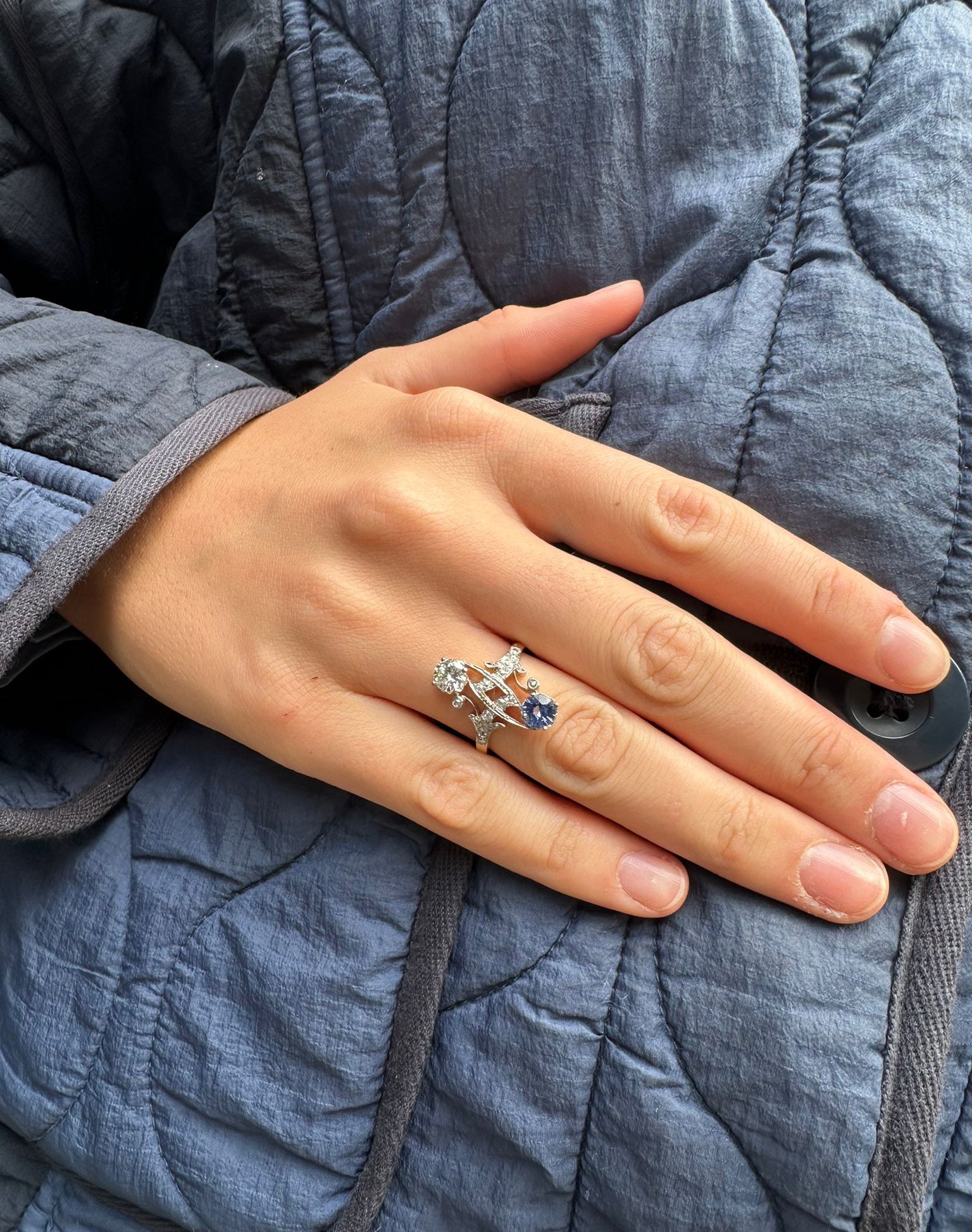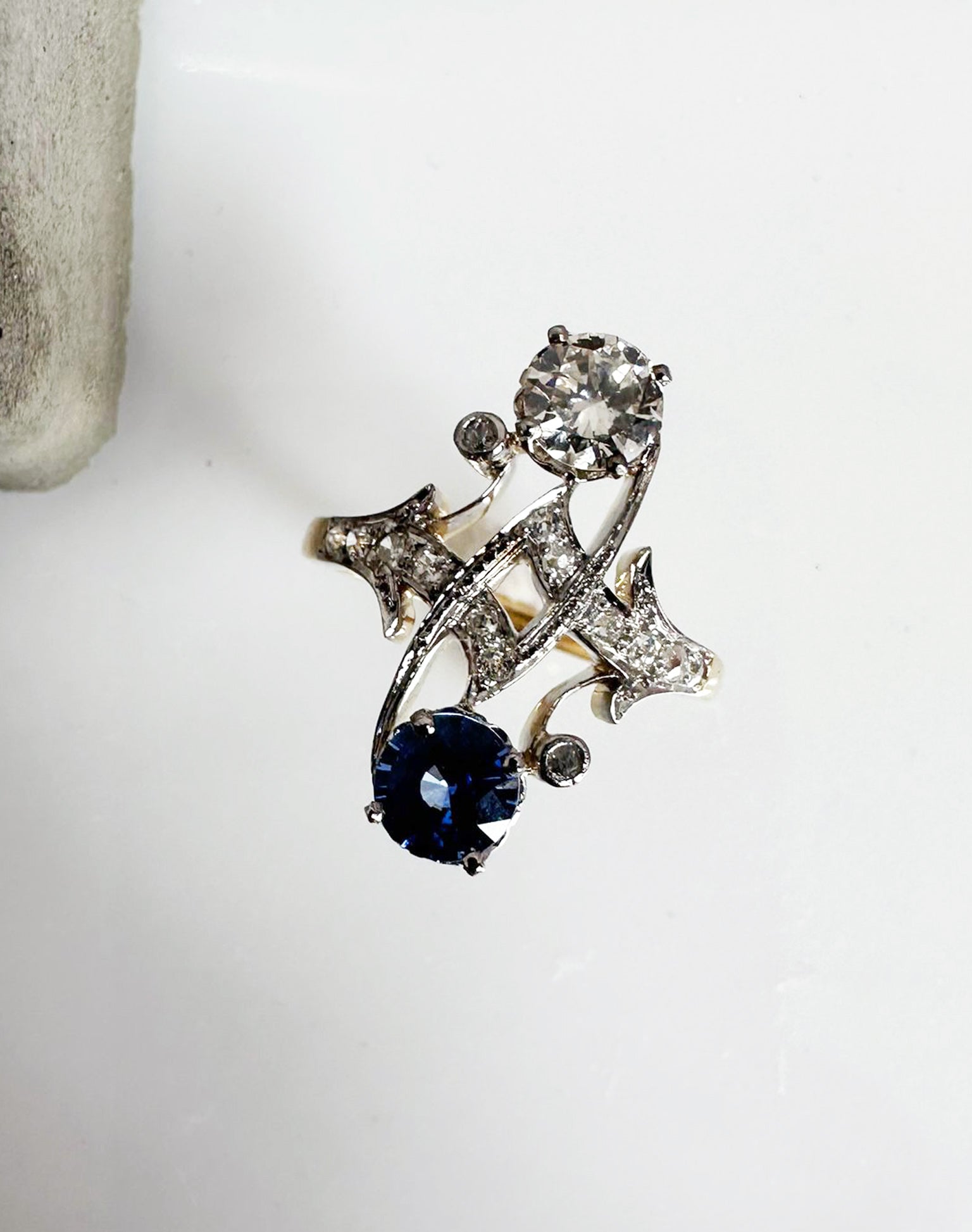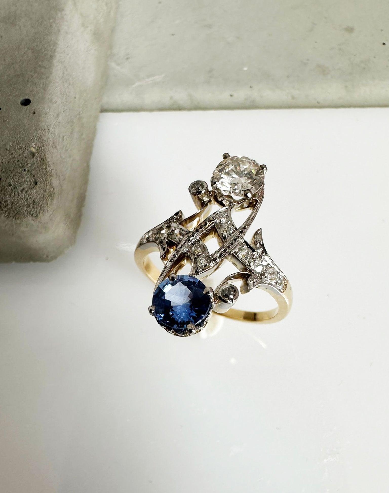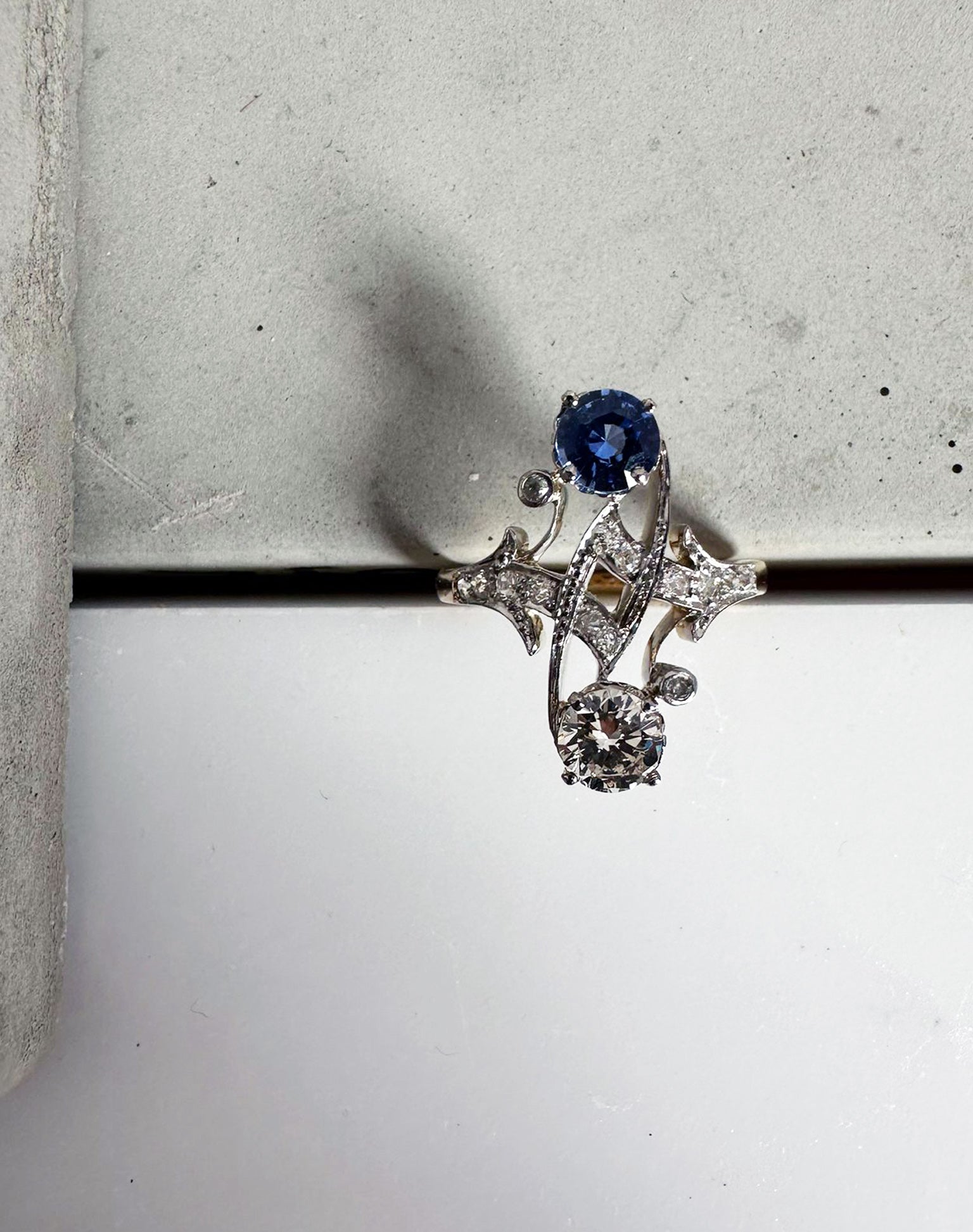 Bague Vintage bicolore avec un diamant de 0,50cm & un saphir Ceylan 0,67ct