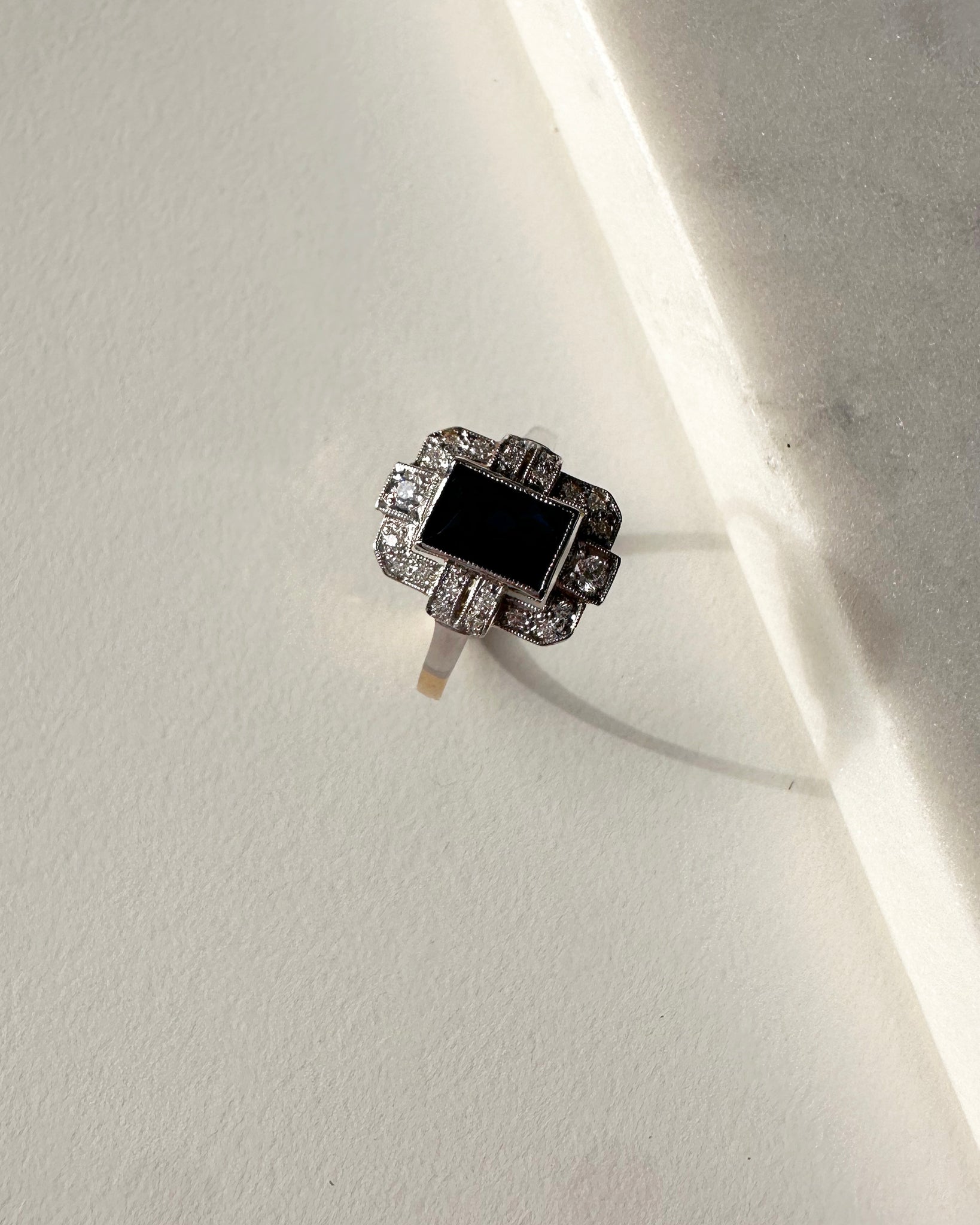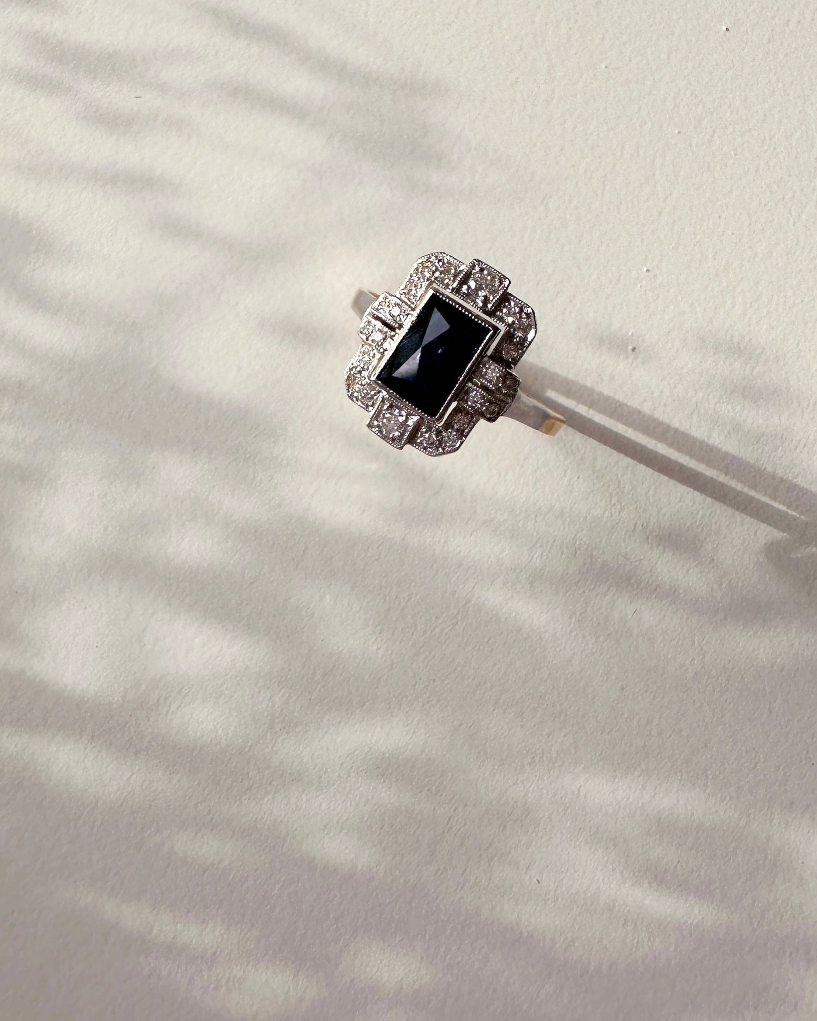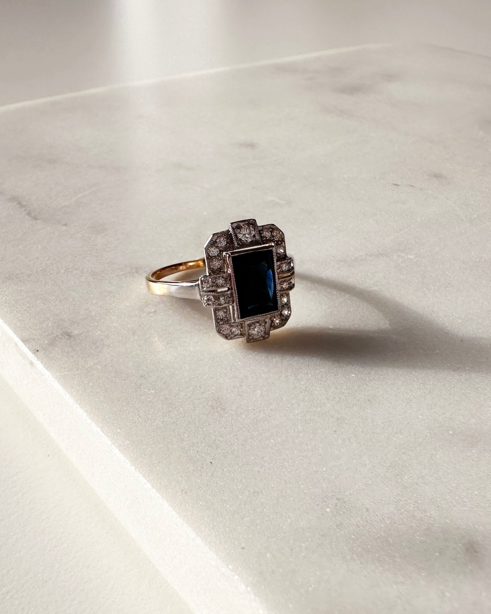 Bague Vintage bicolore sertie d'un saphir cabochon facetté 0,86ct & brillants 0,20ct