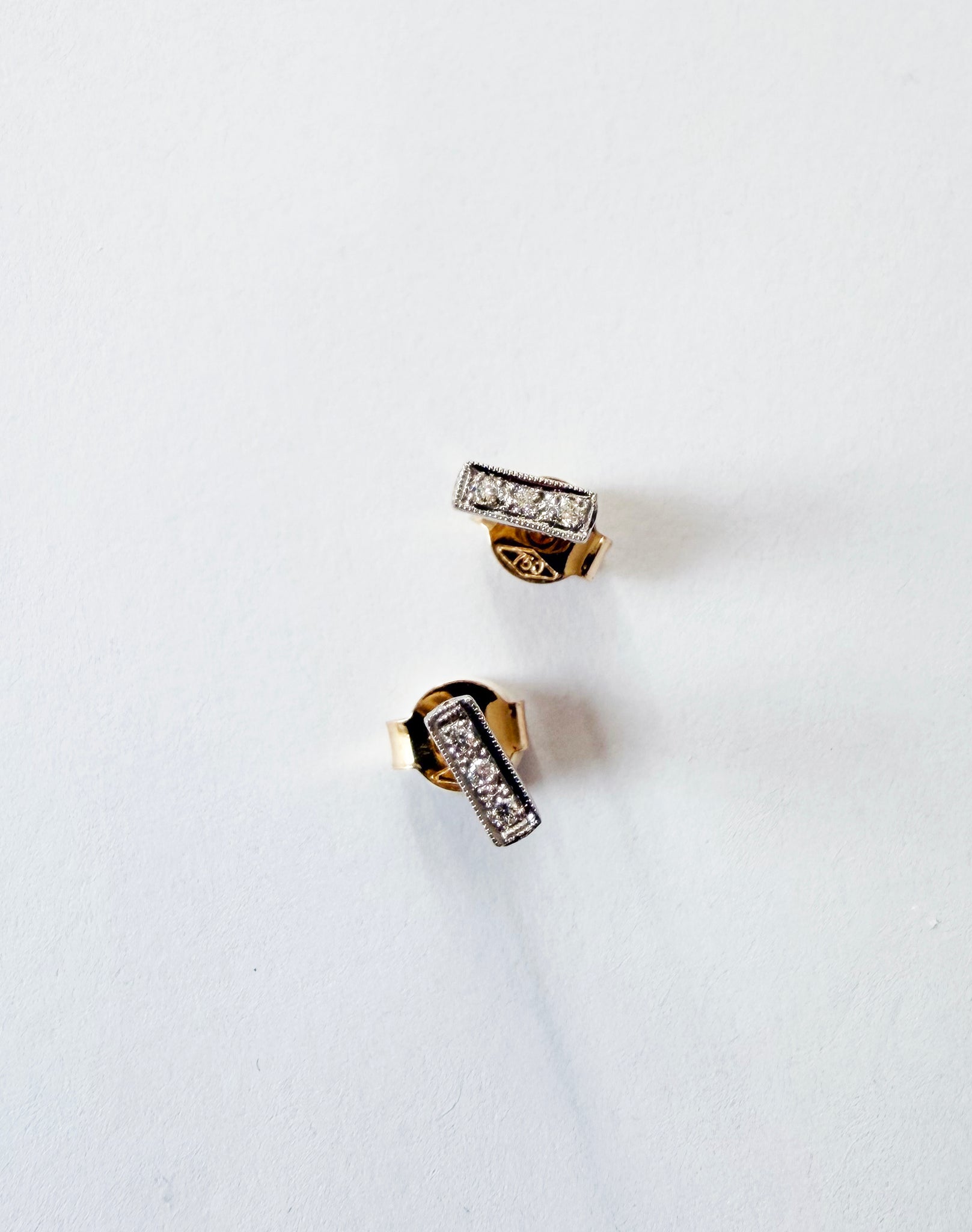 Boucles d'oreilles Vintage bicolore serties de 6 diamants 0,05ct
