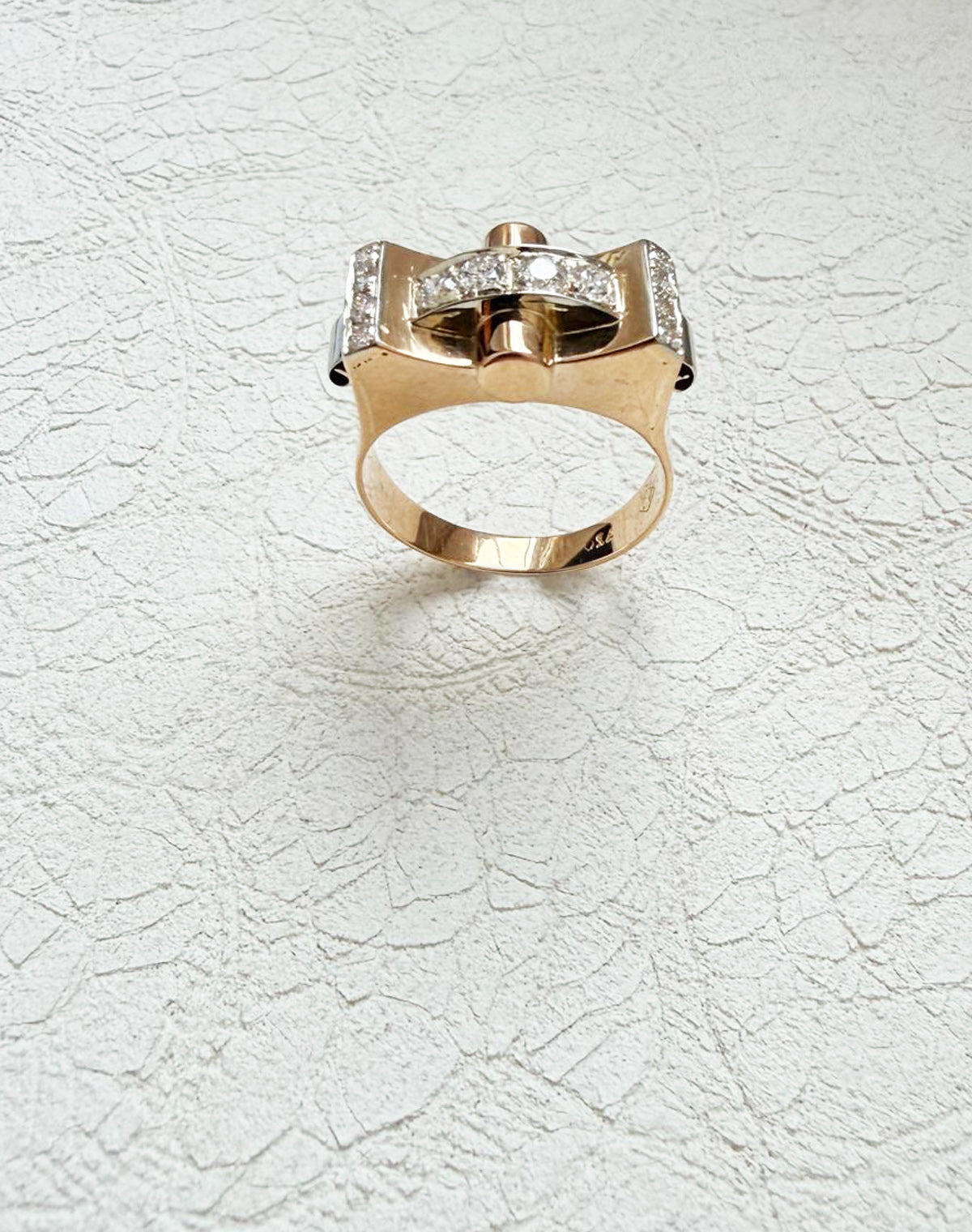 Bague Vintage bicolore en or rose & or blanc 18KT sertie de diamants 0,40ct